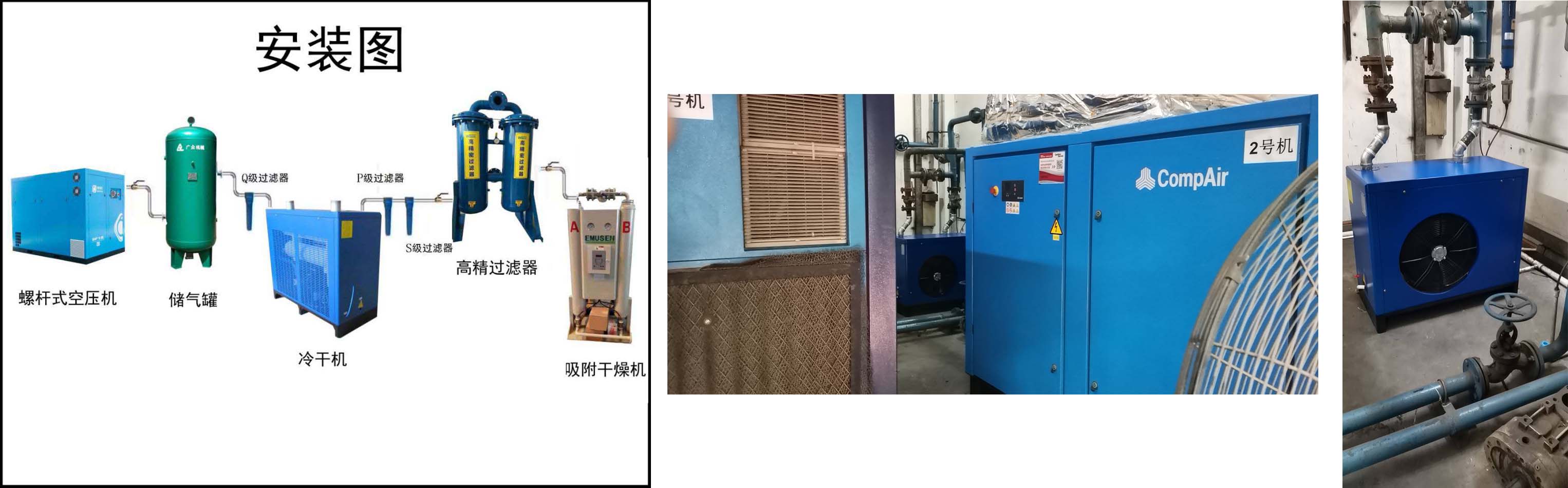 單位記作Nm3/min。 按GB/T13277-91《通常用壓縮空氣質量等級》(等效選用ISO8573第II有些)規則,壓縮空氣含水等級共分6級,其間1~3級壓力露點均在-20℃以下,運用吸附干燥器才干到達。其典型的應用領域有:拍攝膠片、微電子芯片(1級,-70℃)、精細噴涂(2級,-40℃),粉狀商品運送(3級,-20℃)等。 再生吸附式干燥器(Regenerative desiccant dryers)經過壓力改變(變壓吸附原理)來到達干燥作用。因為氣體包容水汽的才干與壓力成反比,其干燥后的一有些氣體(稱為再生氣)減壓脹大大氣壓,這種壓力改變使脹大氣體變得更干燥,然后讓它流過需再生的干燥劑層(選用顆粒活性碳吸附)(即已吸收滿足水汽的枯燥塔),干燥的再生氣吸出干燥劑里的水分,鮑斯螺桿壓縮,螺桿壓縮,干燥器空壓機